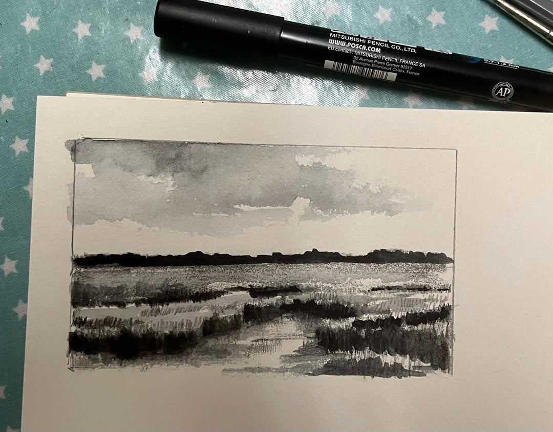 She takes inspiration from a variety of sources, whether she is recording her travels in simple sketchbooks or painting the landscapes of Monmouthshire.