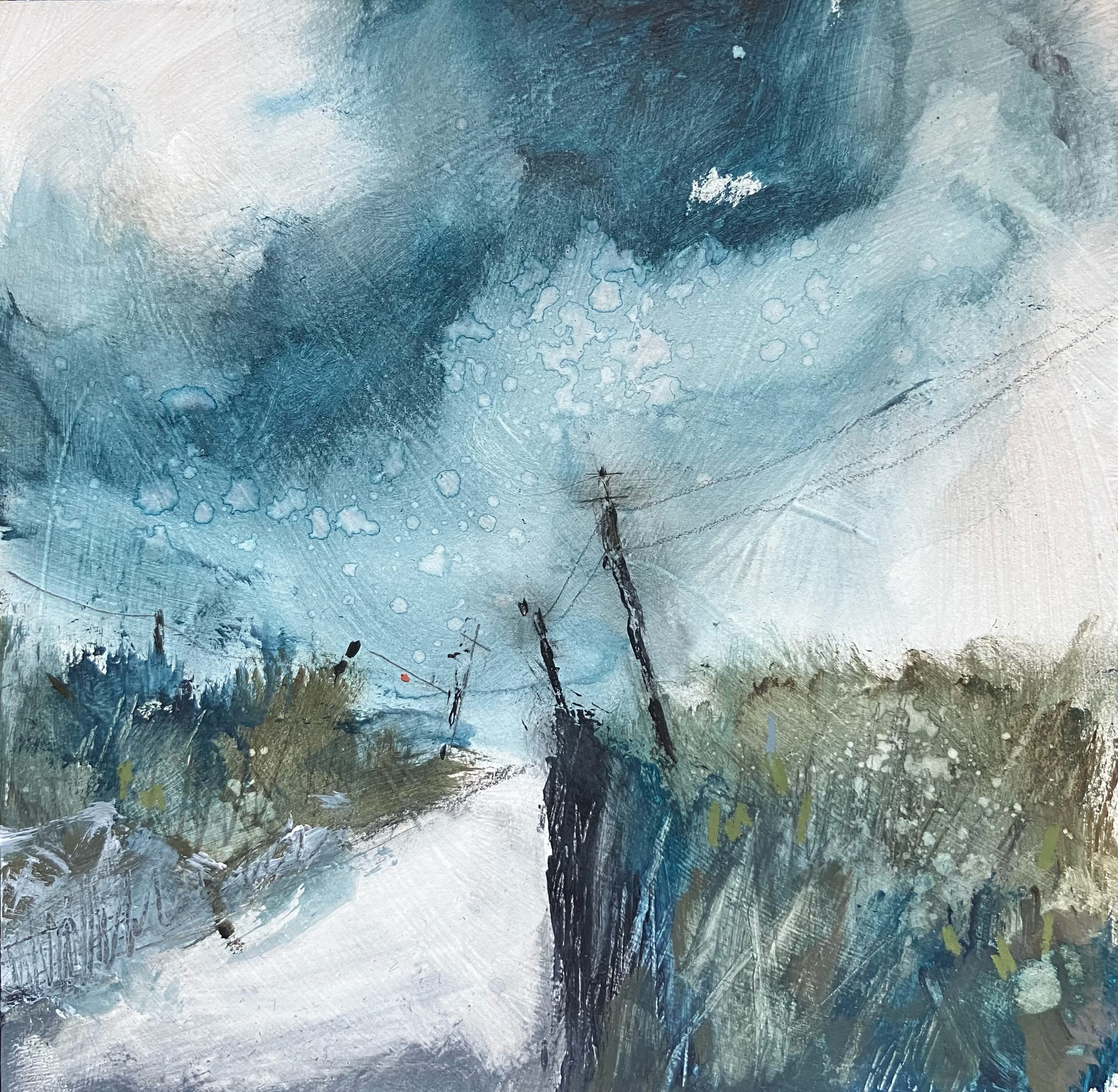 I use a variety of media in my work – often combining different materials to achieve an interesting and unexpected outcome. I paint intuitively – I rarely plan my work, preferring instead to respond in the moment to marks I have made – the outcome is unpredictable and depends on serendipity